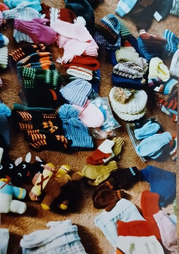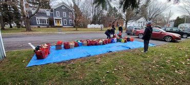 We provide gifts for each child, a donation of a ham for a family, hats & mittens/gloves and snow boots, and personal care items. For teenagers, we offer gift cards to Walmart so they can choose their own presents. We also deliver food baskets to the elderly.